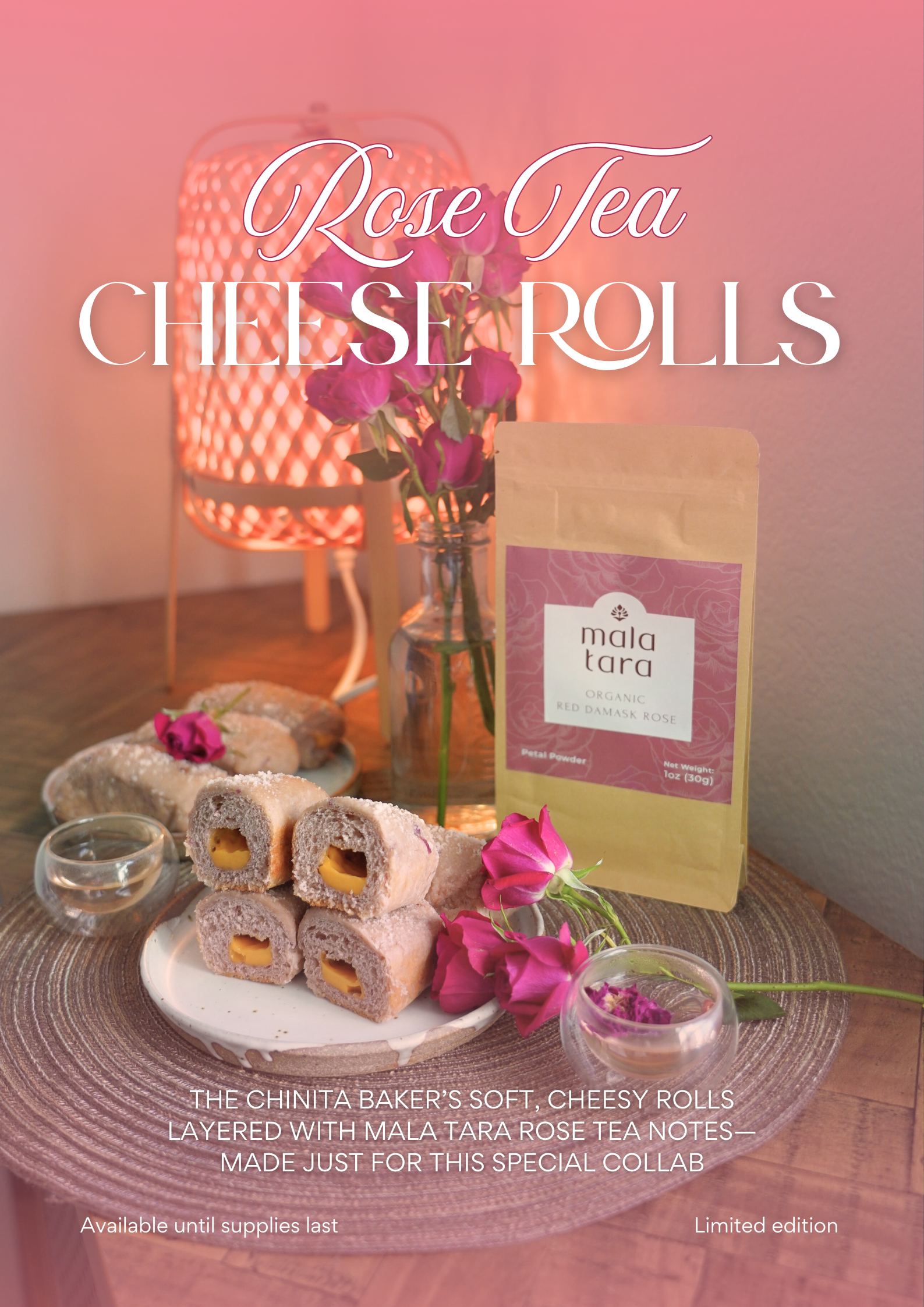 The Chinita Baker’s soft, cheesy rolls layered with mala tara rose tea notes—made just for this special collaboration.